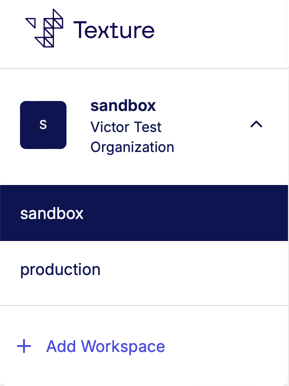 When you create an Organization, you are automatically given two default Workspaces. We create one called production and another called sandbox for you. This helps you get started quickly and will accommodate most basic use cases out of the box.